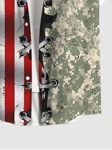 Chemise Drapeau Américain Imprimé 3D avec Poche de Grande Taille à Lacets - Multi-a - L