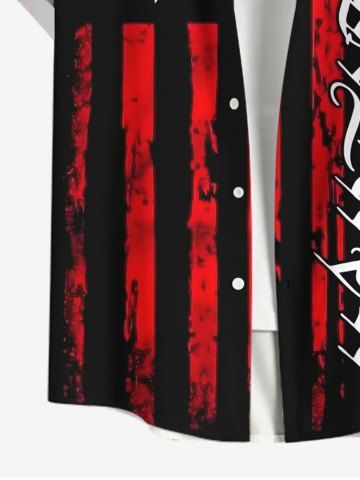 Chemise Drapeau Américain Lettre Imprimée avec Poche de Grande Taille avec Boutons - Noir - Noir
