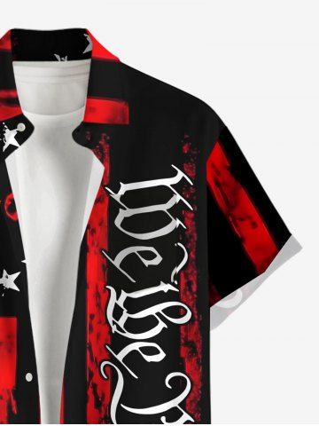 Chemise à Manches Courts> Chemise Drapeau Américain Lettre Imprimée avec Poche de Grande Taille avec Boutons