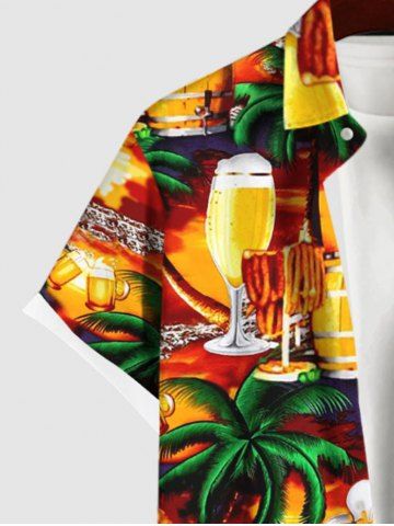 Chemise Échacrée Boutonnée Imprimé Cocotier Grande Taille avec Poche - Orange - Orange