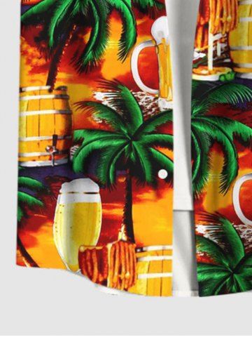 Chemise Échacrée Boutonnée Imprimé Cocotier Grande Taille avec Poche - Orange - Orange