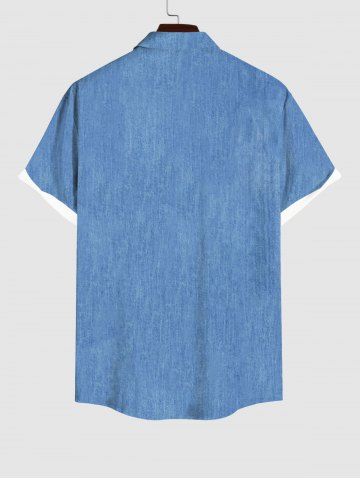 Chemise en Jean avec Poches et à Imprimé 3D Grande-Taille pour Hommes - Bleu-gris - S