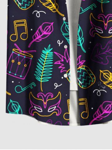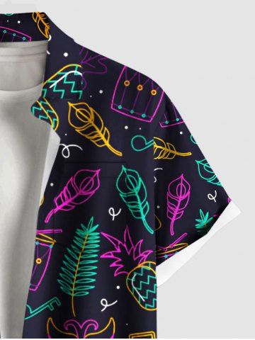 Chemise et Pochette Boutonnée Feuille Tropicale Imprimée de Grande Taille avec Poche - Noir - Noir