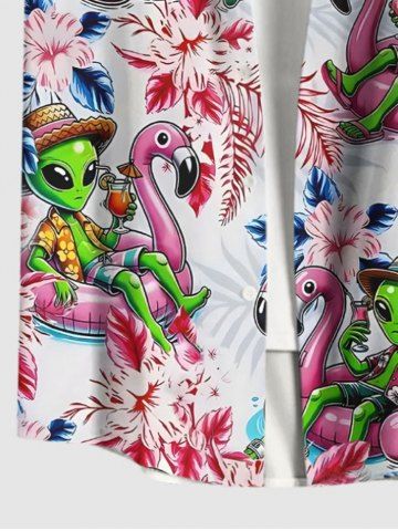 Chemise à Manches Courts > Chemise Extraterrestre Fleur Feuille Tropicale et Flamant Imprimés de Grande Taille avec Poche
