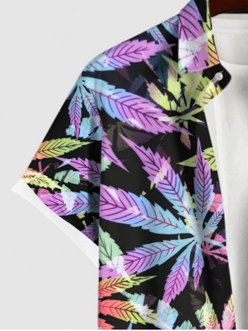 Chemise Feuille D'Érable Colorée Imprimée de Grande Taille avec Poche - Multi-a - 4xl