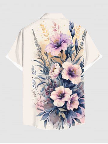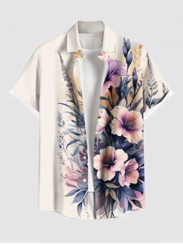 Chemise Feuille D'Hibiscus et Fleur Imprimés avec Poche de Grande Taille pour Homme - Café Lumière - Xl