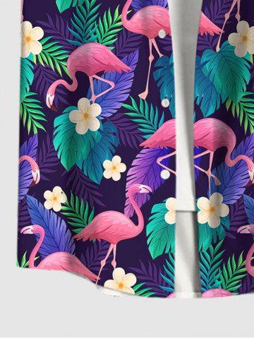Chemise Feuille Fleur Palmier et Flamant Imprimés de Grande Taille avec Poche en Avant - Multi-a - M