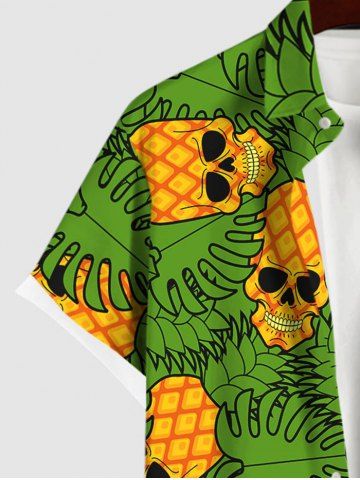 Chemise Feuilles D'Ananas Noix de Coco Imprimés avec Poche de Grande Taille pour Homme - Noir - Noir