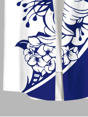 Chemise Fleur D'Hibiscus et Feuille Imprimées de Grande Taille avec Poche en Deux Couleurs - Multi-a - 3xl