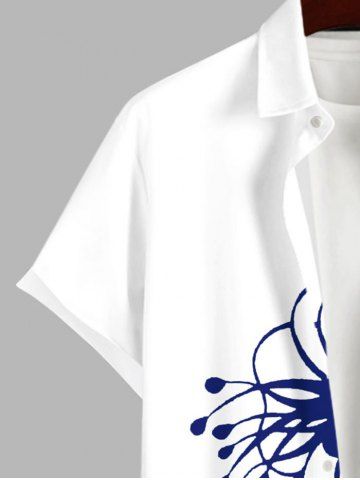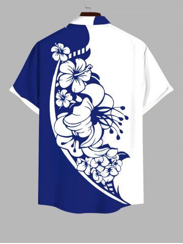 Chemise à Manches Courts > Chemise Fleur D'Hibiscus et Feuille Imprimées de Grande Taille avec Poche en Deux Couleurs