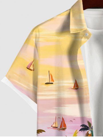 Chemise Fleurie Arbre Noix de Coco Océan Imprimés de Grande Taille avec Poche Boutonnée pour Homme - Orange Clair - S