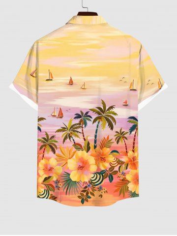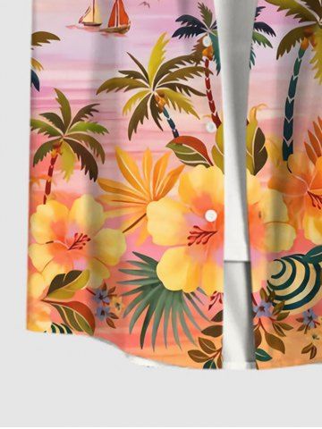 Chemise à Manches Courts> Chemise Fleurie Arbre Noix de Coco Océan Imprimés de Grande Taille avec Poche Boutonnée pour Homme