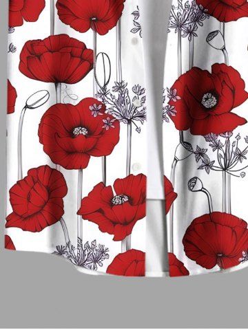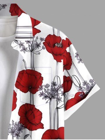 Chemise Fleurie Branche Imprimée avec Poche de Grande Taille pour Homme - Rouge - Rouge