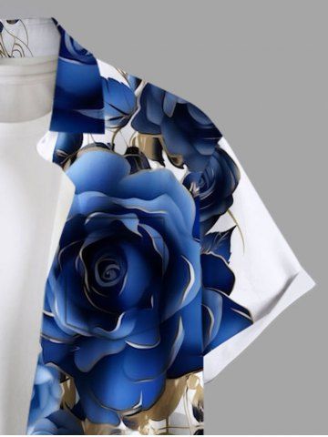 Chemise Fleurs et Feuilles Imprimées avec Poche de Grande Taille avec Boutons pour Homme - Blanc - Blanc
