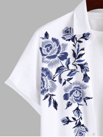 Chemise Fleurs et Feuilles Imprimées avec Poche de Grande Taille pour Homme - Blanc - Blanc