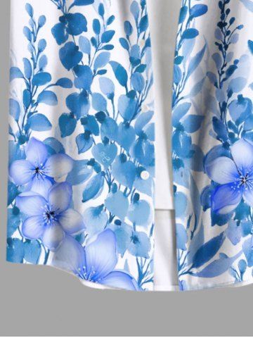 Chemise Fleurs et Feuilles Imprimées avec Poche de Grande Taille pour Homme - Bleu - Bleu