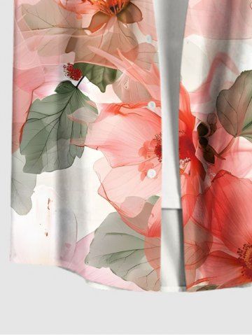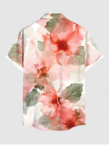 Chemise Fleurs et Feuilles Imprimées avec Poche de Grande Taille pour Homme - Rose Clair - Rose Léger