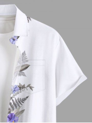 Chemise Fleurs et Feuilles Imprimées avec Poche de Grande Taille pour Homme - Blanc - Blanc