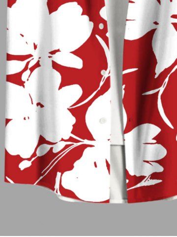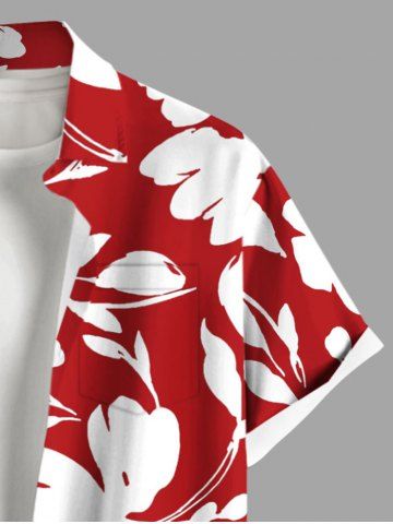 Chemise Fleurs et Feuilles Imprimées avec Poche de Grande Taille pour Homme - Rouge - Rouge