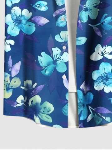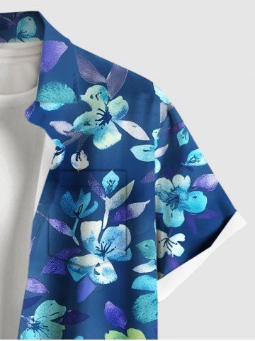 Chemise Fleurs et Feuilles Imprimées avec Poche de Grande Taille pour Homme - Bleu - Bleu