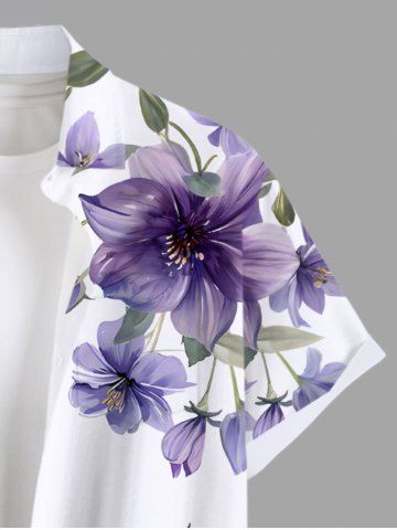 Chemise Fleurs et Feuilles Imprimées avec Poche de Grande Taille pour Homme - Blanc - Blanc