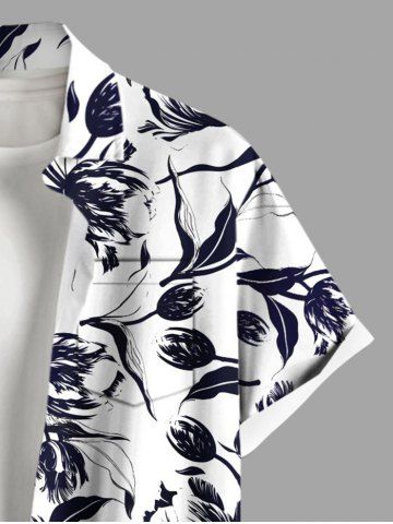 Chemise à Manches Courts> Chemise Fleurs et Feuilles Imprimées avec Poche de Grande Taille pour Homme