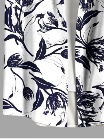 Chemise Fleurs et Feuilles Imprimées avec Poche de Grande Taille pour Homme - Noir - Noir