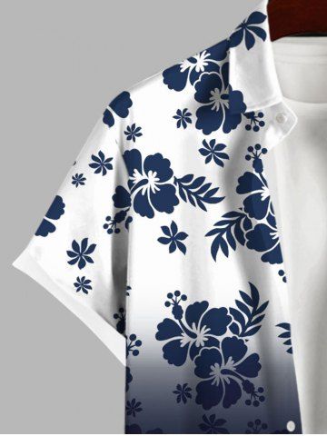 Chemise Fleurs Feuilles D'Hibiscus en Blocs de Couleurs avec Poche de Grande Taille - Bleu De Minuit - 2xl