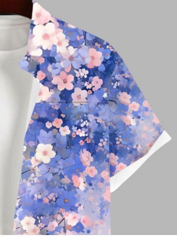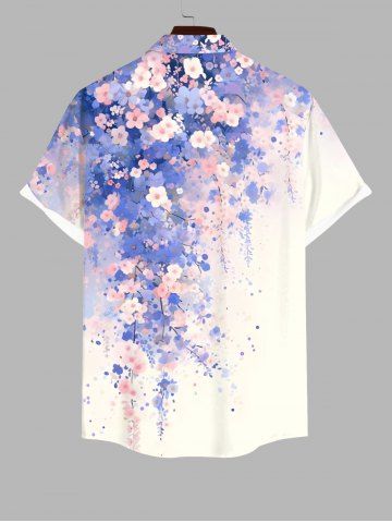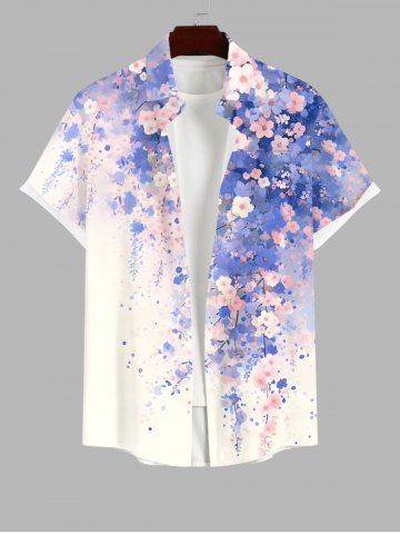 Chemise à Manches Courts> Chemise Fleurs Feuilles Imprimées Aquarelle avec Poche de Grande Taille avec Boutons pour Homme