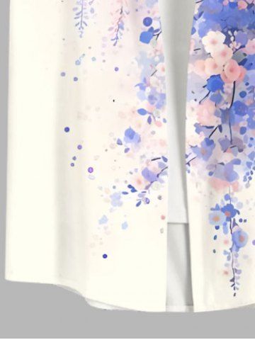 Chemise Fleurs Feuilles Imprimées Aquarelle avec Poche de Grande Taille avec Boutons pour Homme - Multi-a - S