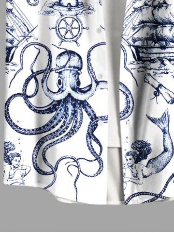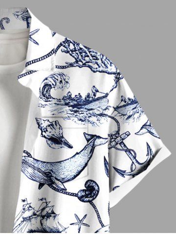 Chemise Formelle Jointive Requin Pieuvre Coquille et Requin Imprimés avec Poche de Grande Taille pour Homme - Blanc - Blanc