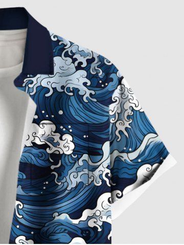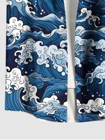 Chemise Formelle Paysage D'Océan avec Poche Cachée Grande Taille pour Homme - Bleu - Bleu