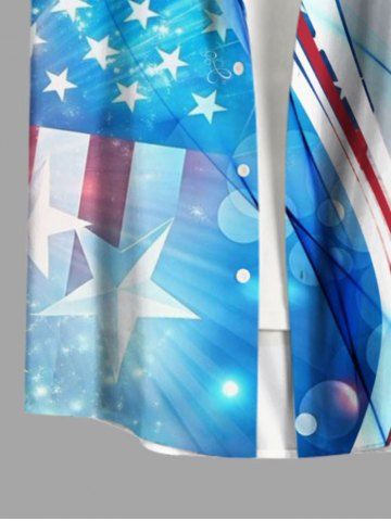 Chemise grande taille à boutons et poche, motif drapeau américain patriotique, faisceau lumineux, imprimé 3D, pour homme - Bleu - Bleu