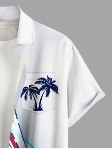 Chemise à Manches Courts> Chemise grande taille à boutons et poche, motif drapeau américain patriotique, faisceau lumineux, imprimé 3D, pour homme