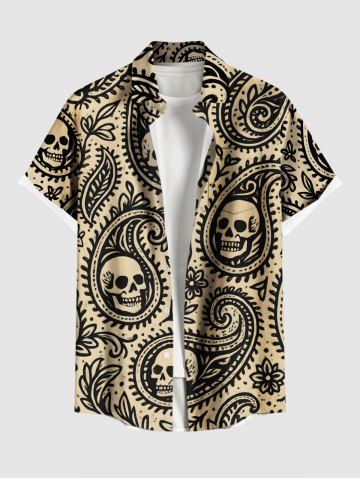 Chemise à Manches Courts > Chemise grande taille à boutons et poches pour homme, motif cachemire, fleurs et crânes, imprimé Halloween