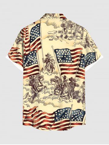 Chemise grande taille à boutons et poches pour homme, motif patriotique, motif cheval et guerrier, avec imprimé drapeau américain - Jaune Clair - 5xl