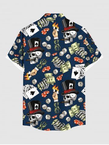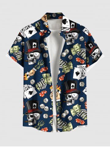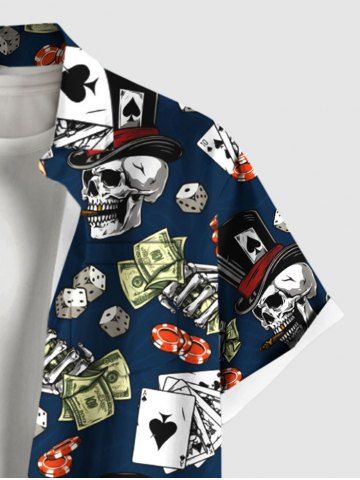 Chemise à Manches Courts> Chemise grande taille à boutons et poches pour homme, motif tête de mort et dés de poker