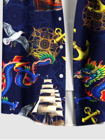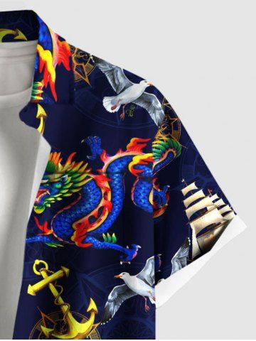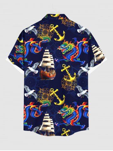 Chemise à Manches Courts> Chemise grande taille à imprimé dragon, ancre, voilier, oiseau, croisière hawaïenne, boutonnée et poche pour homme