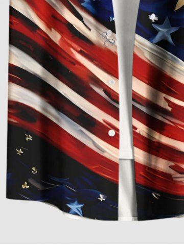 Chemise grande taille à imprimé drapeau américain patriotique et tourbillons, avec boutons et poches, pour homme - Bleu Profond - Xl
