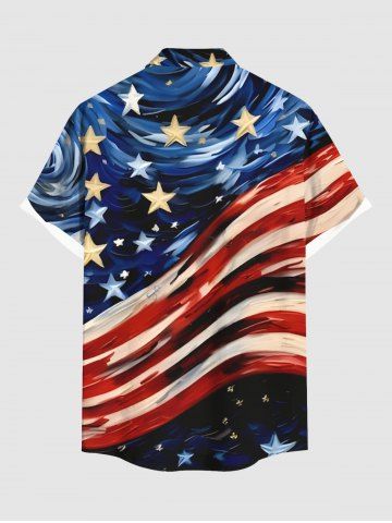 Chemise grande taille à imprimé drapeau américain patriotique et tourbillons, avec boutons et poches, pour homme - Bleu Profond - 3xl