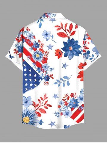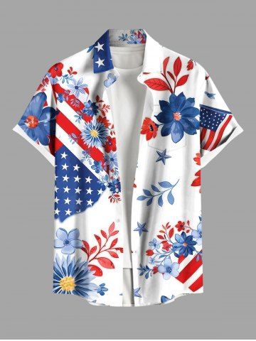 Chemise grande taille à imprimé floral et feuilles hawaïennes, motif patriotique, avec poches et boutons, pour homme - Blanc - Blanc