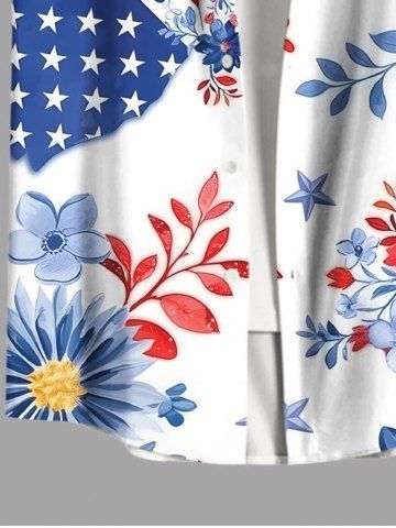 Chemise à Manches Courts> Chemise grande taille à imprimé floral et feuilles hawaïennes, motif patriotique, avec poches et boutons, pour homme