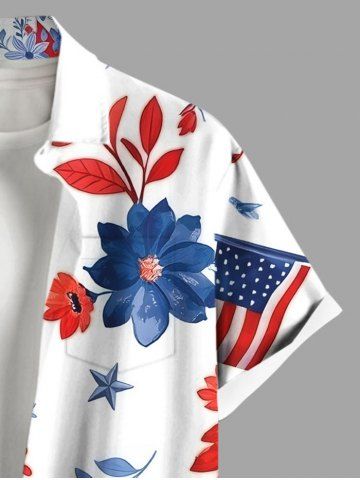 Chemise à Manches Courts > Chemise grande taille à imprimé floral et feuilles hawaïennes, motif patriotique, avec poches et boutons, pour homme