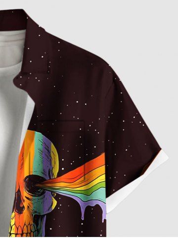 Chemise à Manches Courts> Chemise grande taille à imprimé galaxie et squelette coloré pour homme, avec poches boutonnées pour Halloween