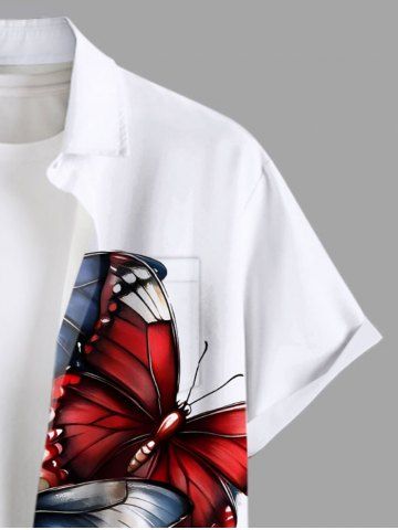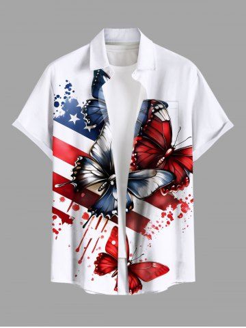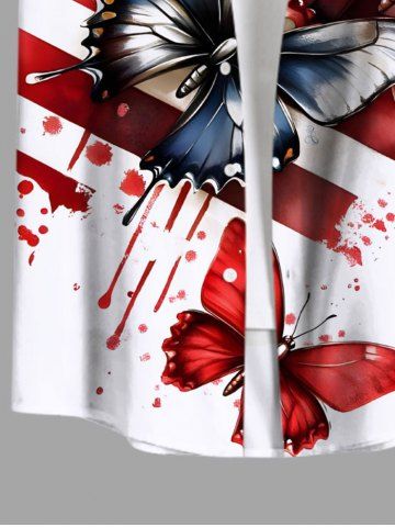 Chemise grande taille à imprimé papillon et éclaboussures de peinture, motif drapeau américain patriotique, style hawaïen, avec poches boutonnées, pour homme - Blanc - Blanc