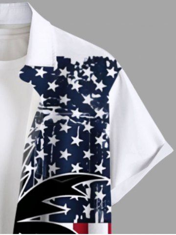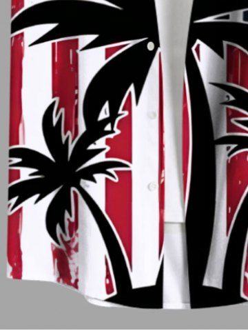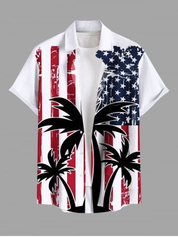 Chemise grande taille à imprimé patriotique drapeau américain cocotier Hawaii boutonnée avec poche pour homme - Blanc - Blanc