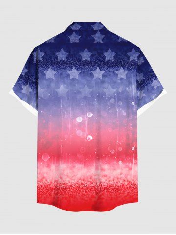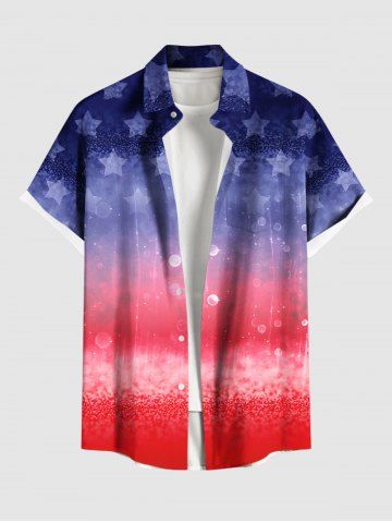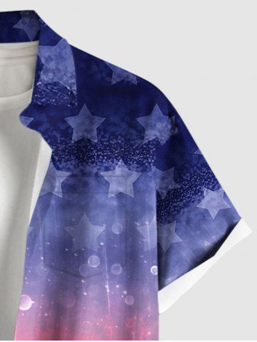 Chemise à Manches Courts> Chemise grande taille à imprimé patriotique drapeau américain et étoiles, boutons et poches pour homme