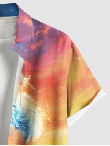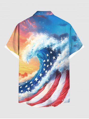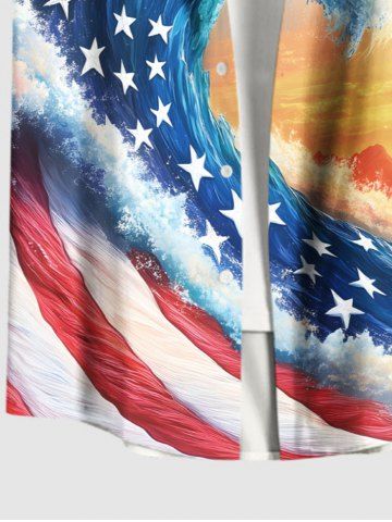 Chemise à Manches Courts> Chemise grande taille à imprimé patriotique drapeau américain, vagues de la mer, ciel ombré, imprimé hawaïen, bouton et poche pour homme