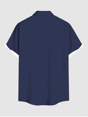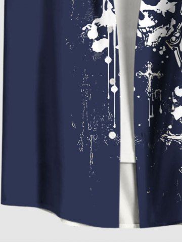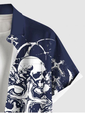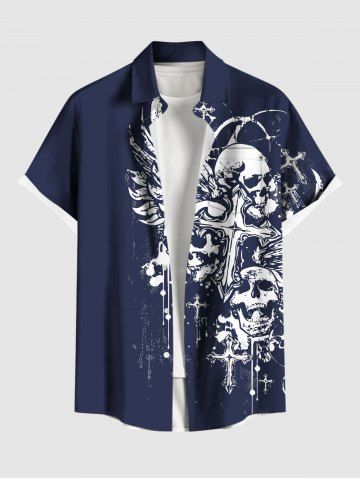 Chemise grande taille à imprimé tête de mort, croix et ailes, avec poches boutonnées pour homme - Bleu - Bleu