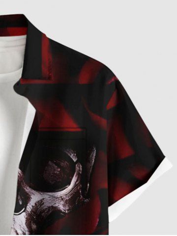 Chemise grande taille à imprimé tête de mort et boutons avec poche pour homme - Rouge Vineux - 5xl